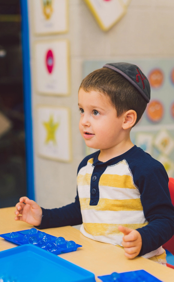 By exploring, observing, experimenting, and being actively involved in developmentally appropriate experiences, the children learn firsthand about the world around them. They enjoy opportunities to take the initiative, figure things out for themselves, and experience success. This strengthens their sense of competence and confidence, their motivation to persist and their willingness to take risks. By encouraging and expanding upon the excitement, wonder and energy of preschool children, our dedicated and talented Rebbeim and Morahs ensure that all of our boys enter their school years as independent, inquisitive and enthusiastic learners.